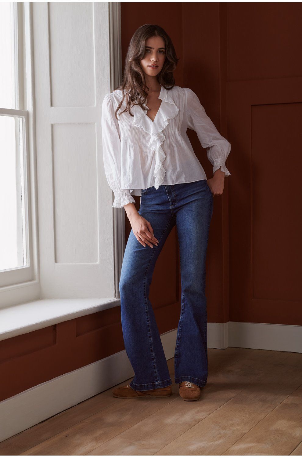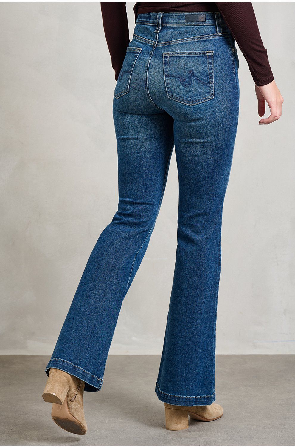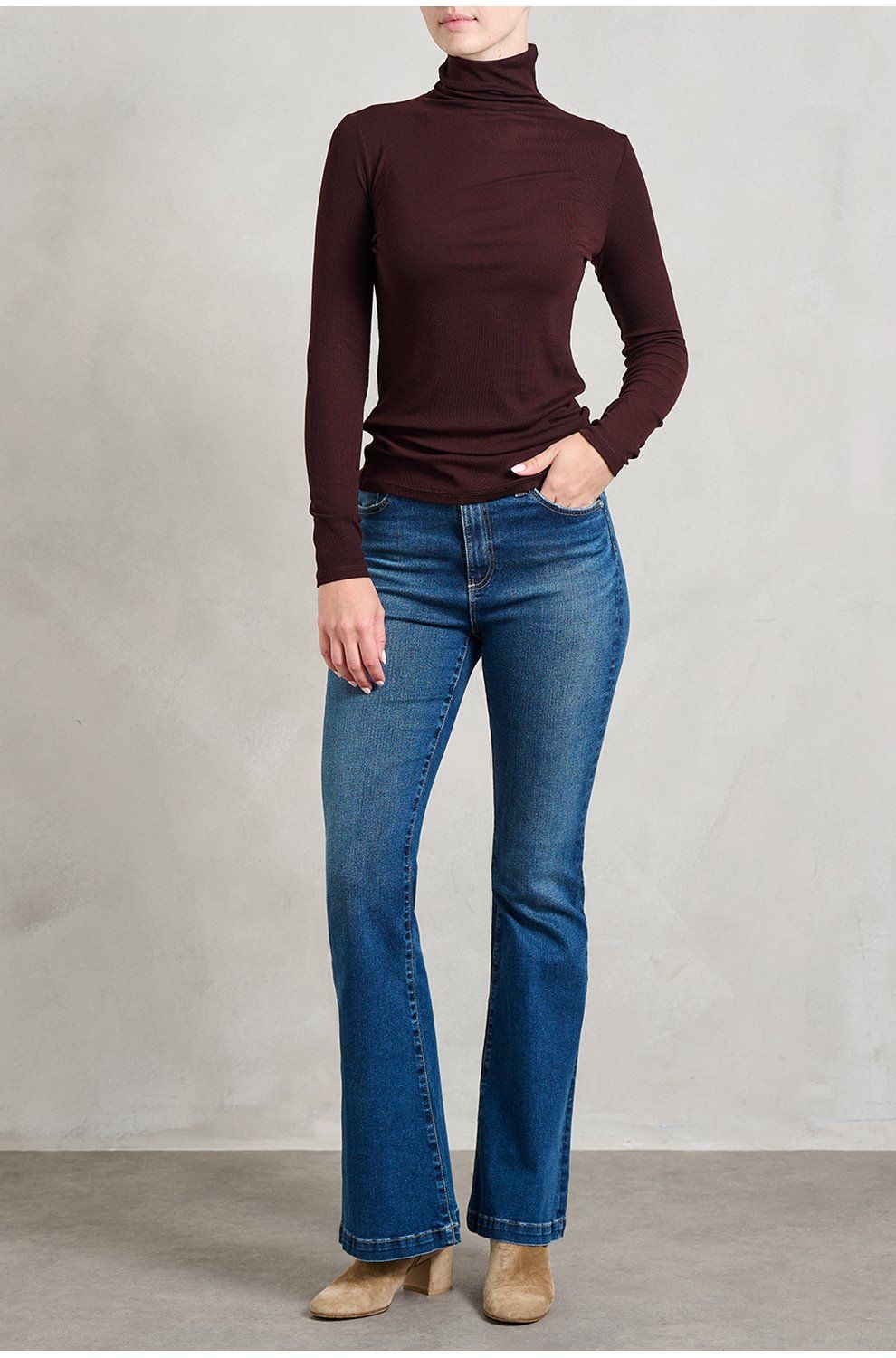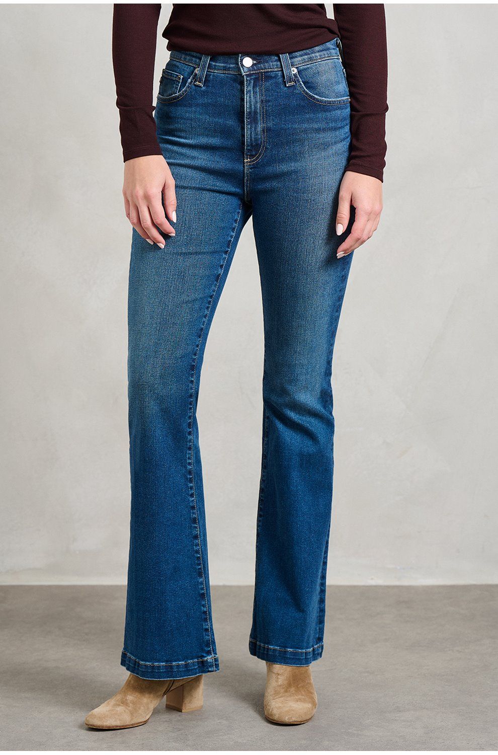 - High-rise, designed for a slim fit that flares out below the knee