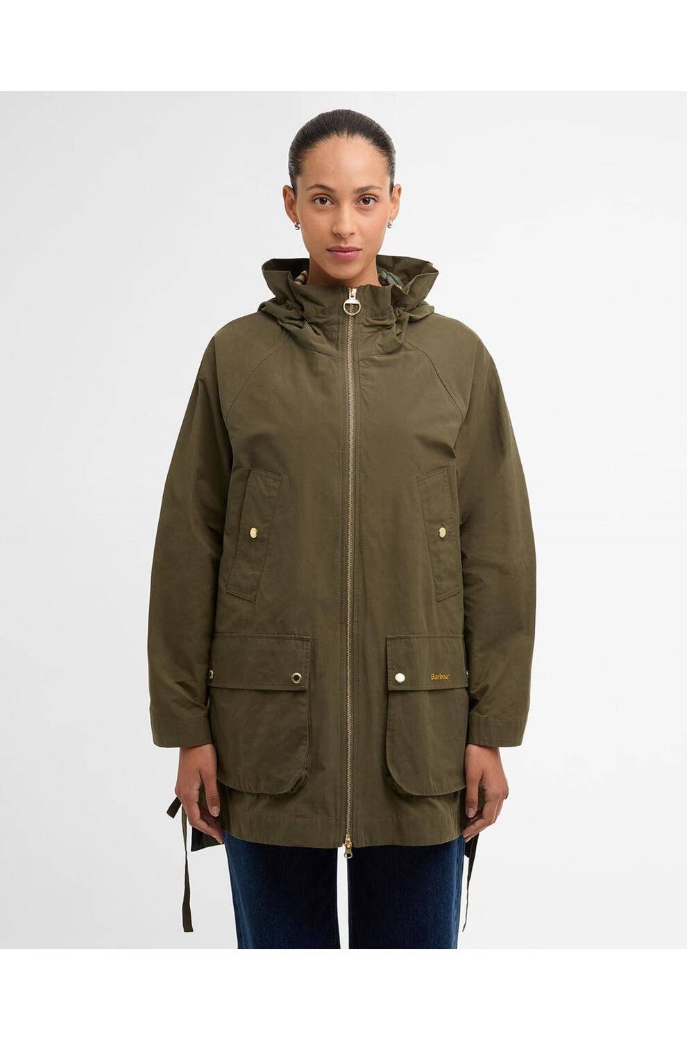 The Middlemarch jacket is a parka-style showerproof jacket, in a modern but practical cut. In a longer cut, this jacket features a dropped hem with side-tie details, practical pockets and hood, and stylish tartan accent detail.