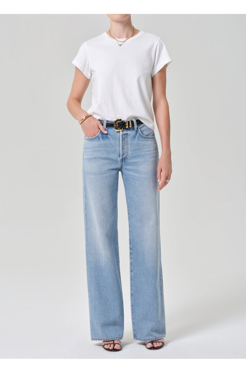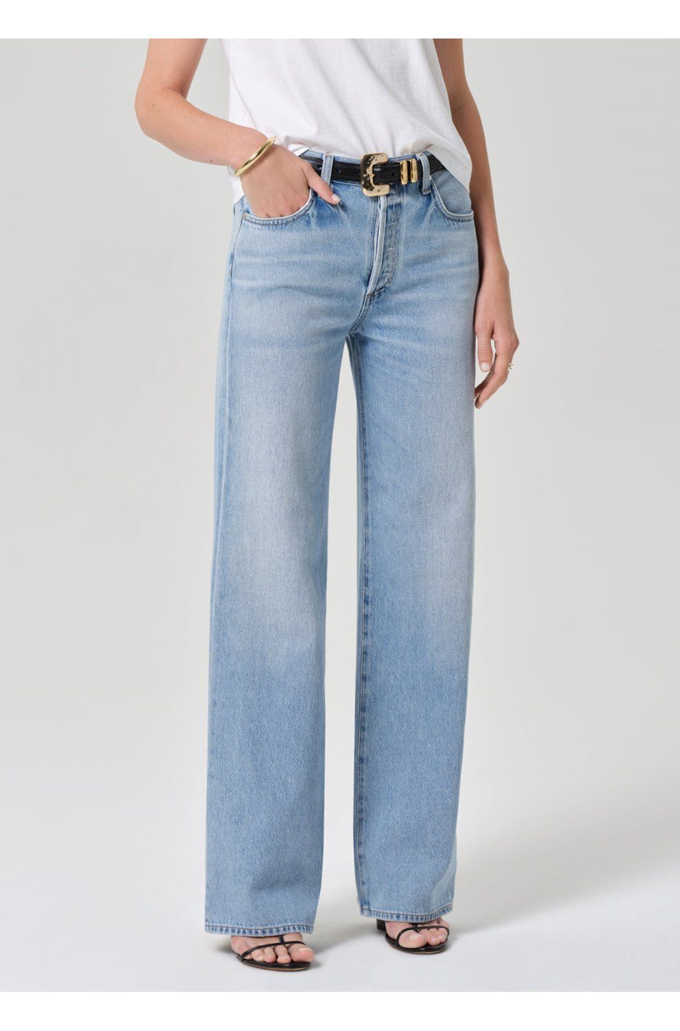 - High-rise, designed for a wide leg fit