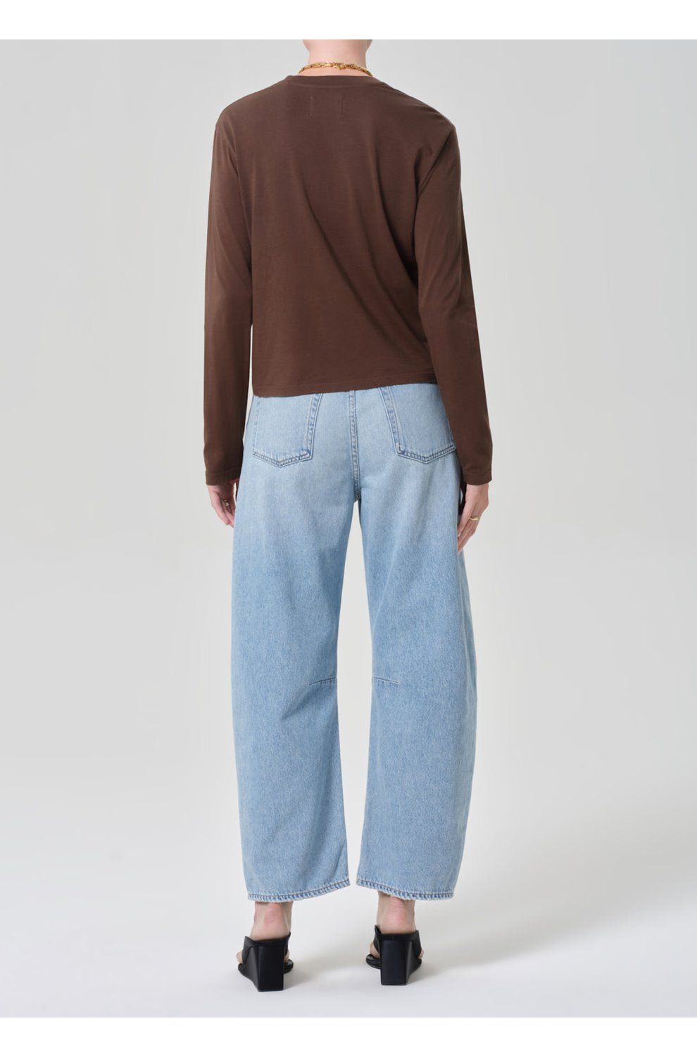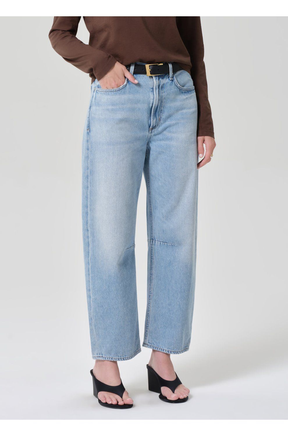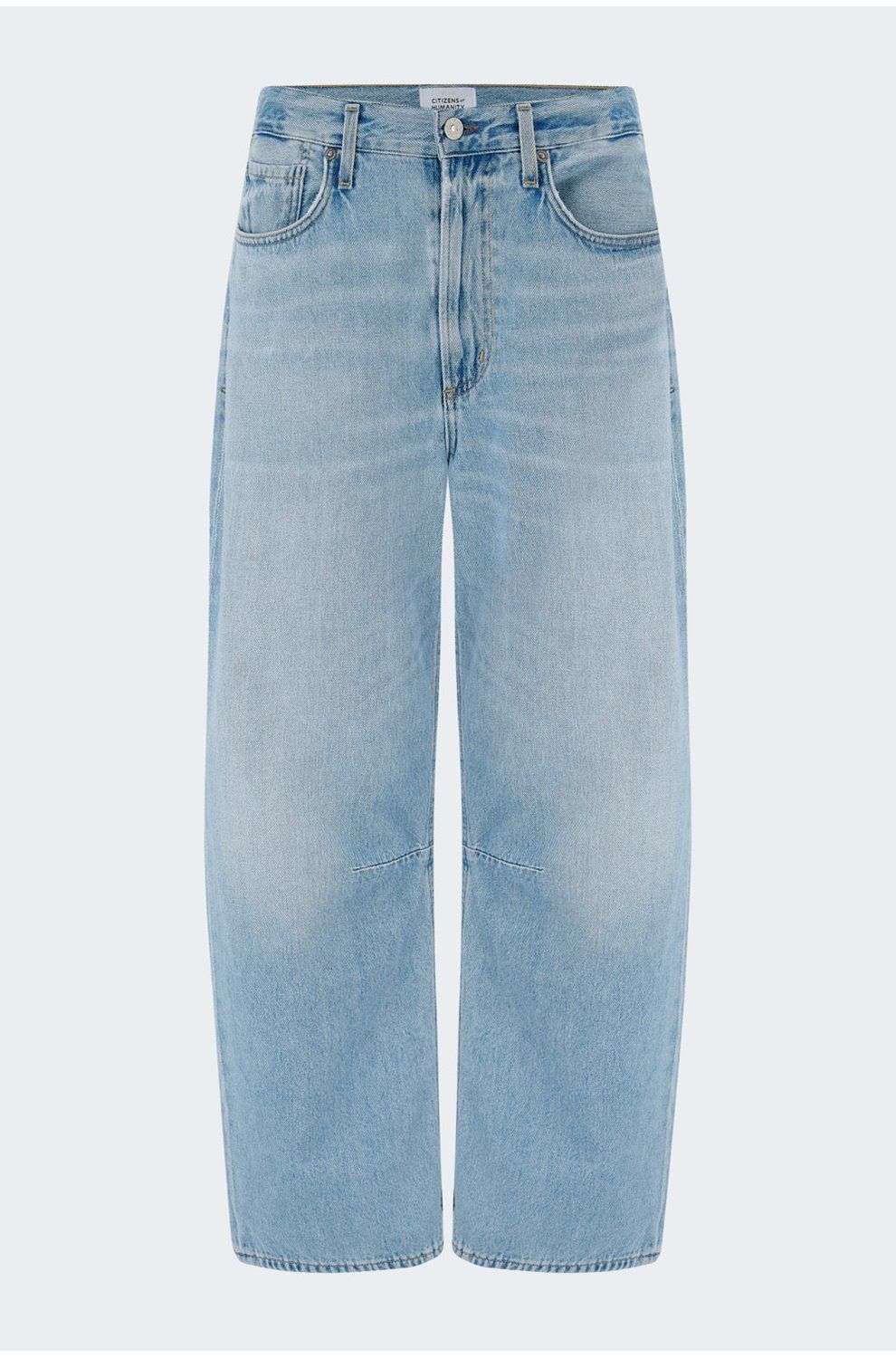 - High-rise, designed for a subtly curved barrel leg fit