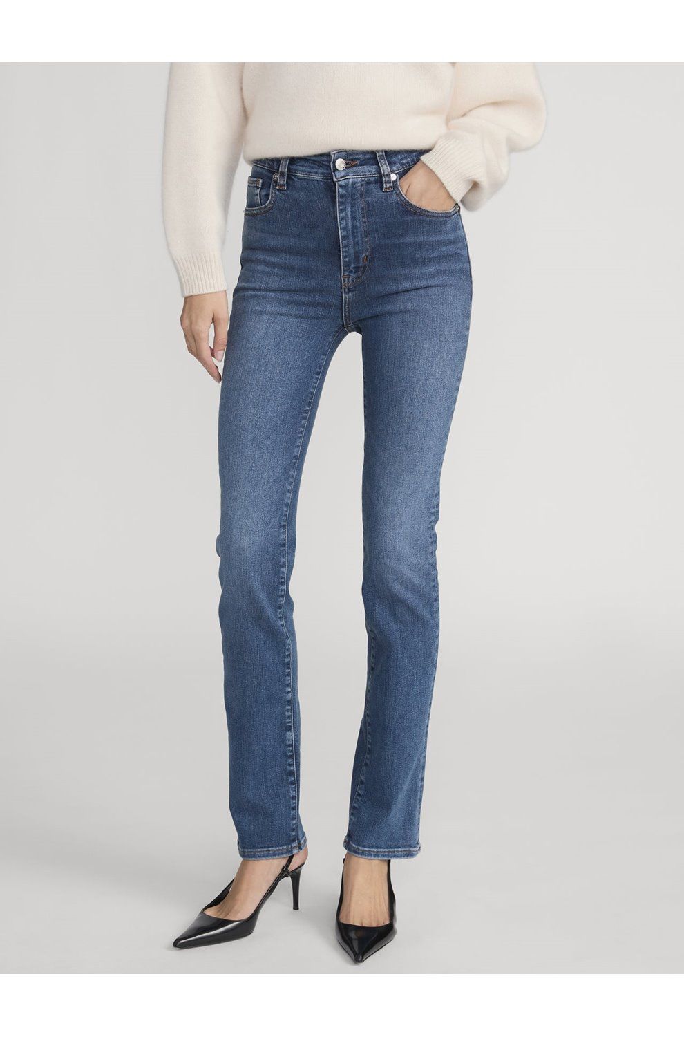 - High-rise, designed for a slim straight fit