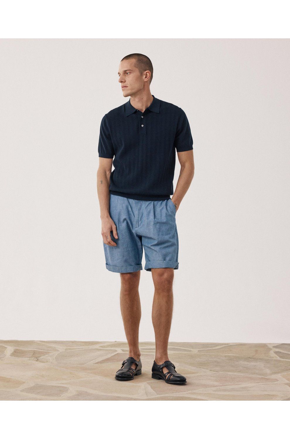 retro knit sweater polo in navy