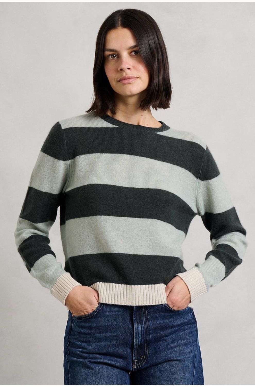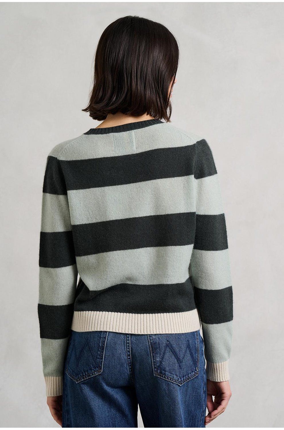 contrast stripe crew in breen sage jasmine
