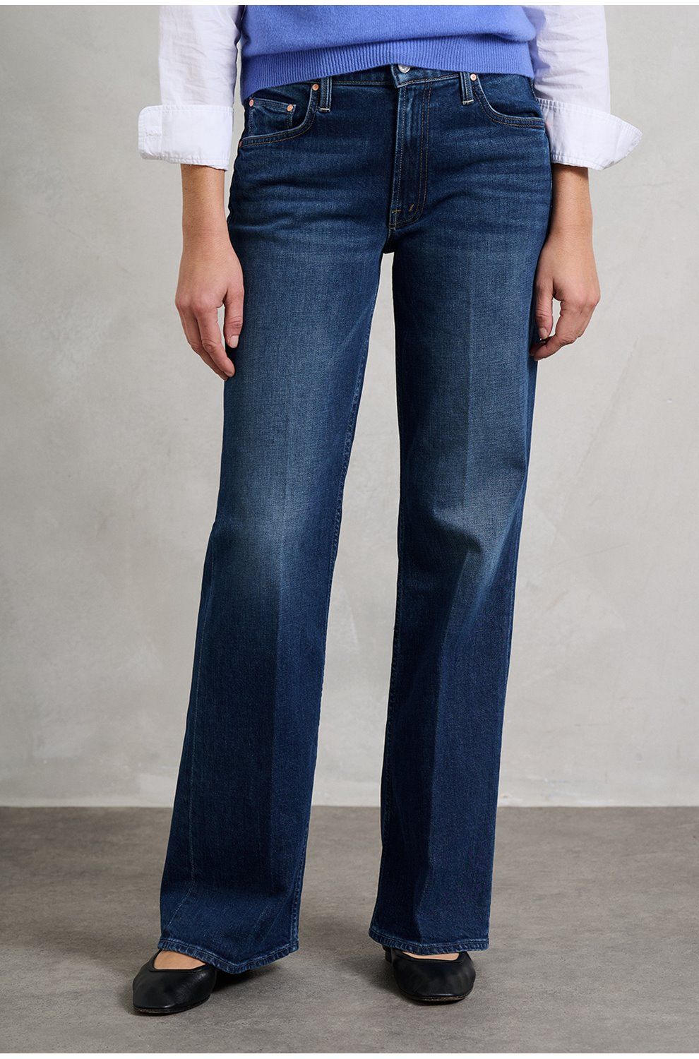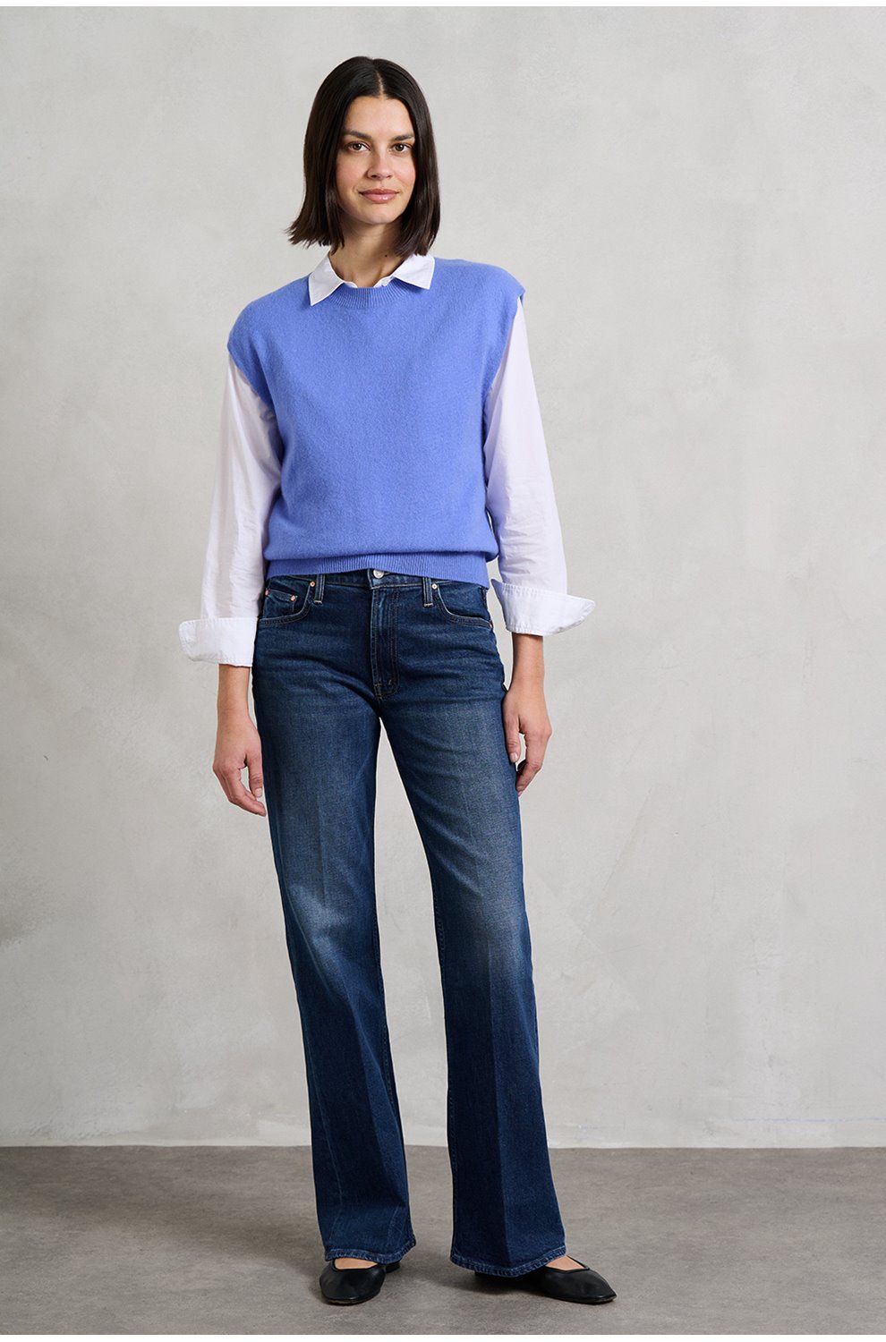 - Descriptive fit topline e.g., High-rise, designed for a wide leg fit / High-rise, slim fit that flares below the knee