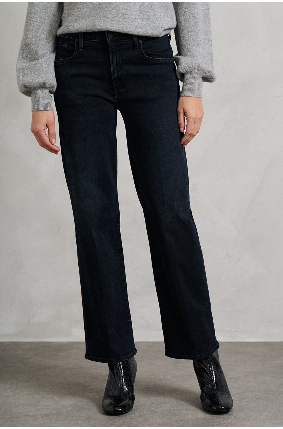 With a flattering mid-to-high rise and classic straight leg, the Mid Rise Rambler from MOTHER comes in Night in Venice this season. Comfortable and cool in stretch denim, this pair has an easy ankle-length inseam and is finished with orange stitching for a classic look.