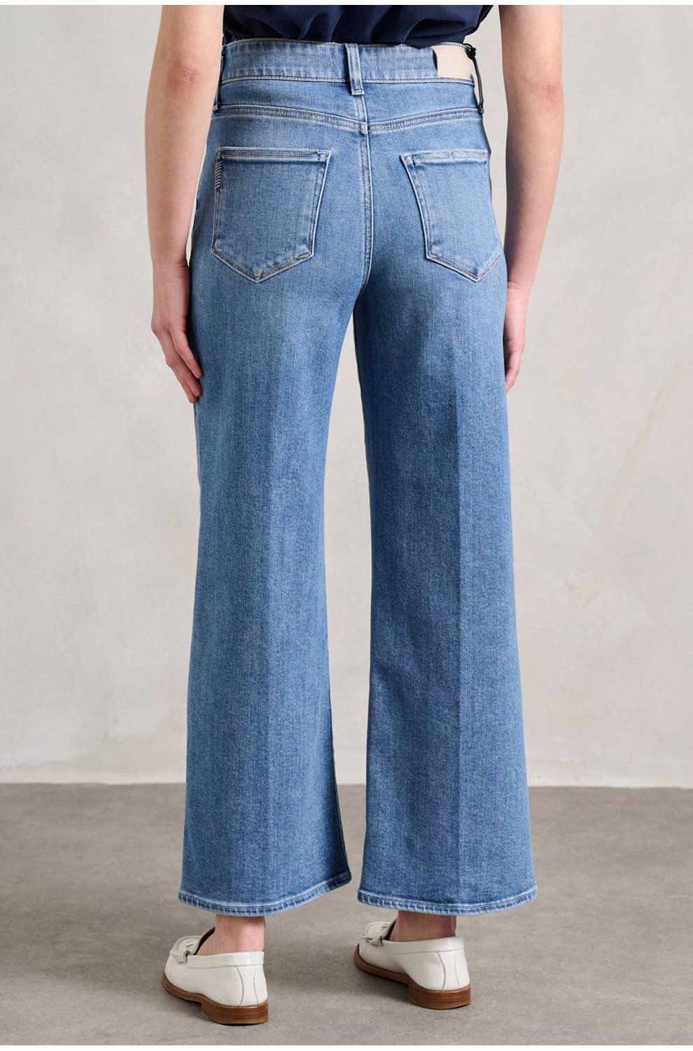 - High-rise, designed for a wide leg fit