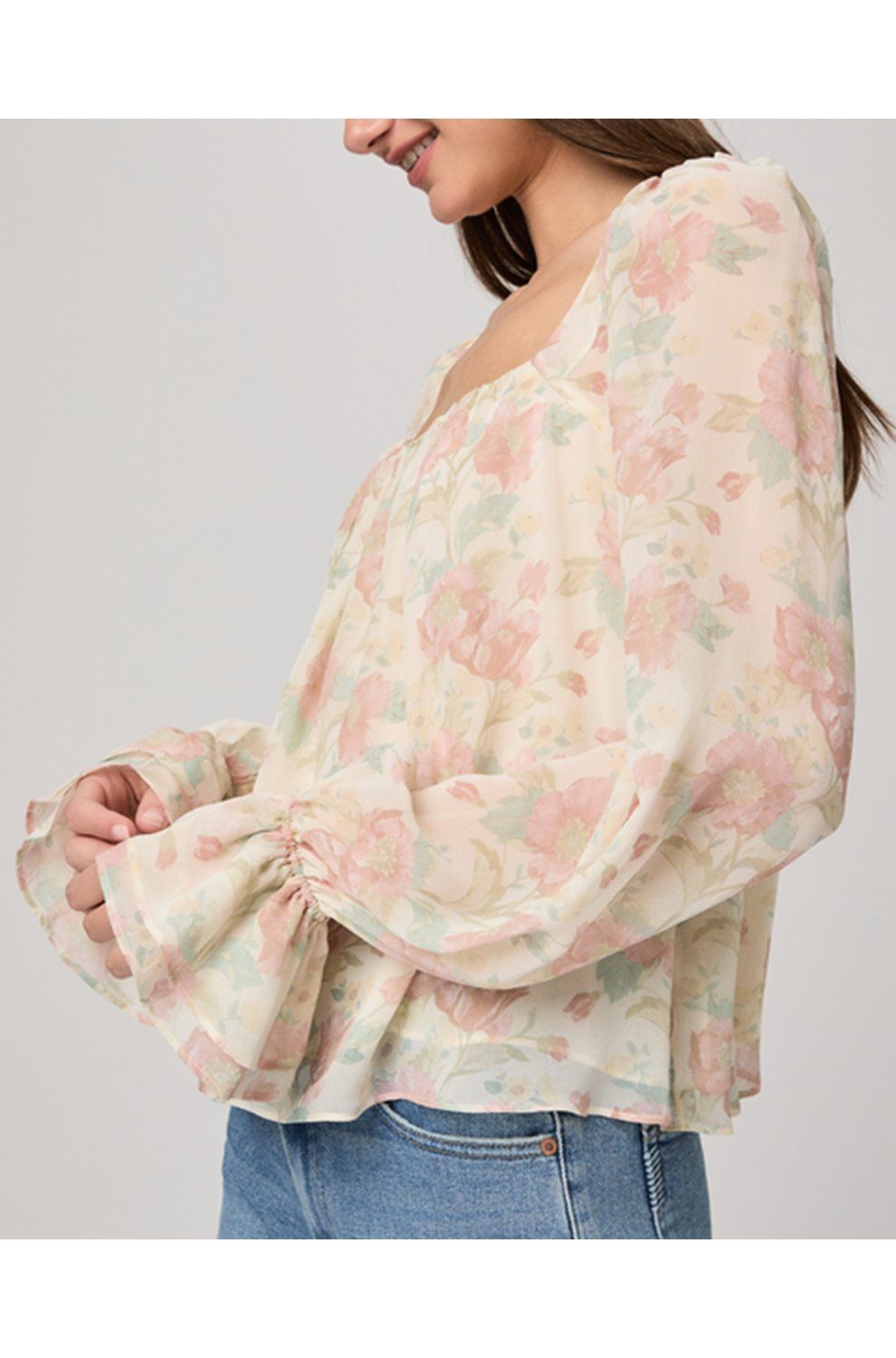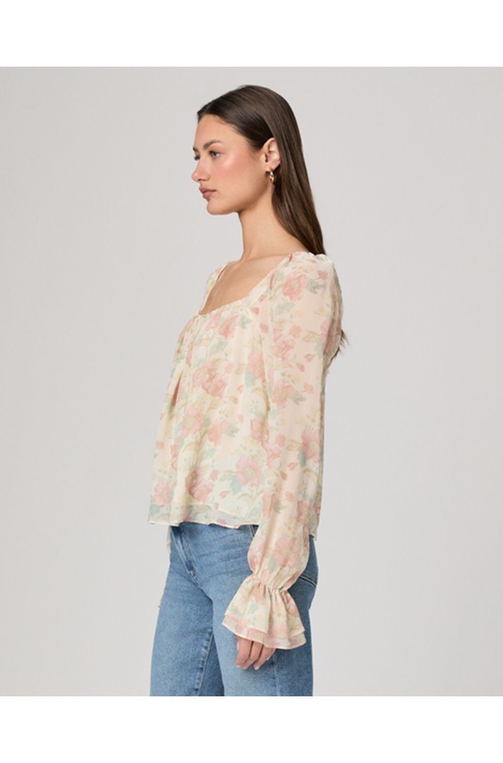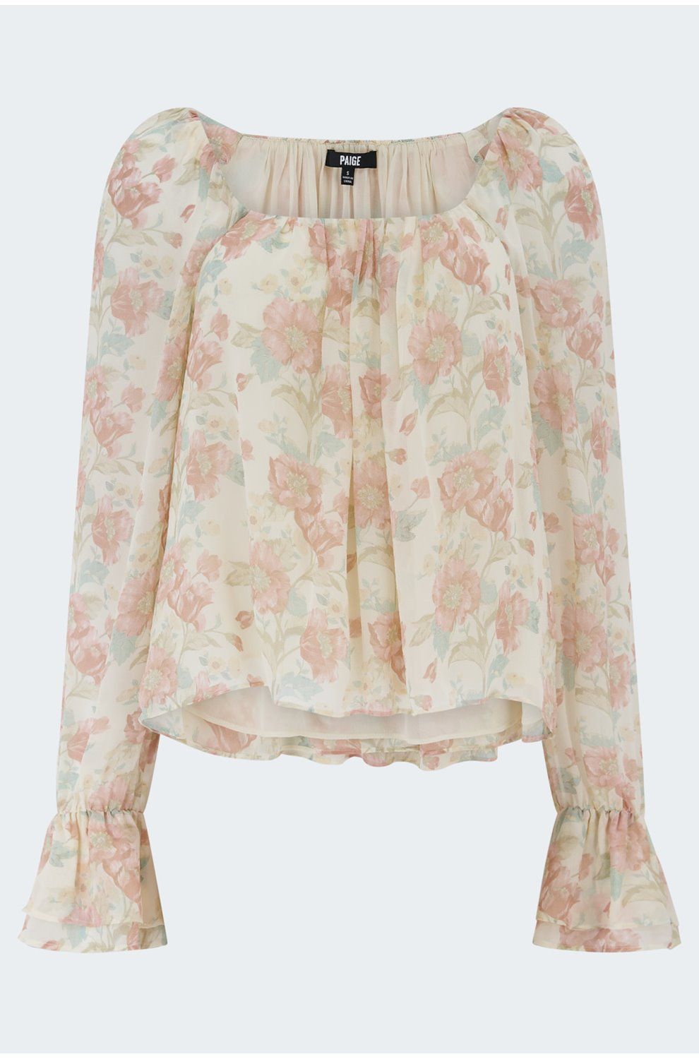 In luxurious silk, this pretty floral blouse from Paige is the perfect addition to your summer wardrobe. With a square neckline, long sleeves with cinched cuffs for volume, and a pretty poppy print against a cream background; pair with white denim for a soft summery finish.