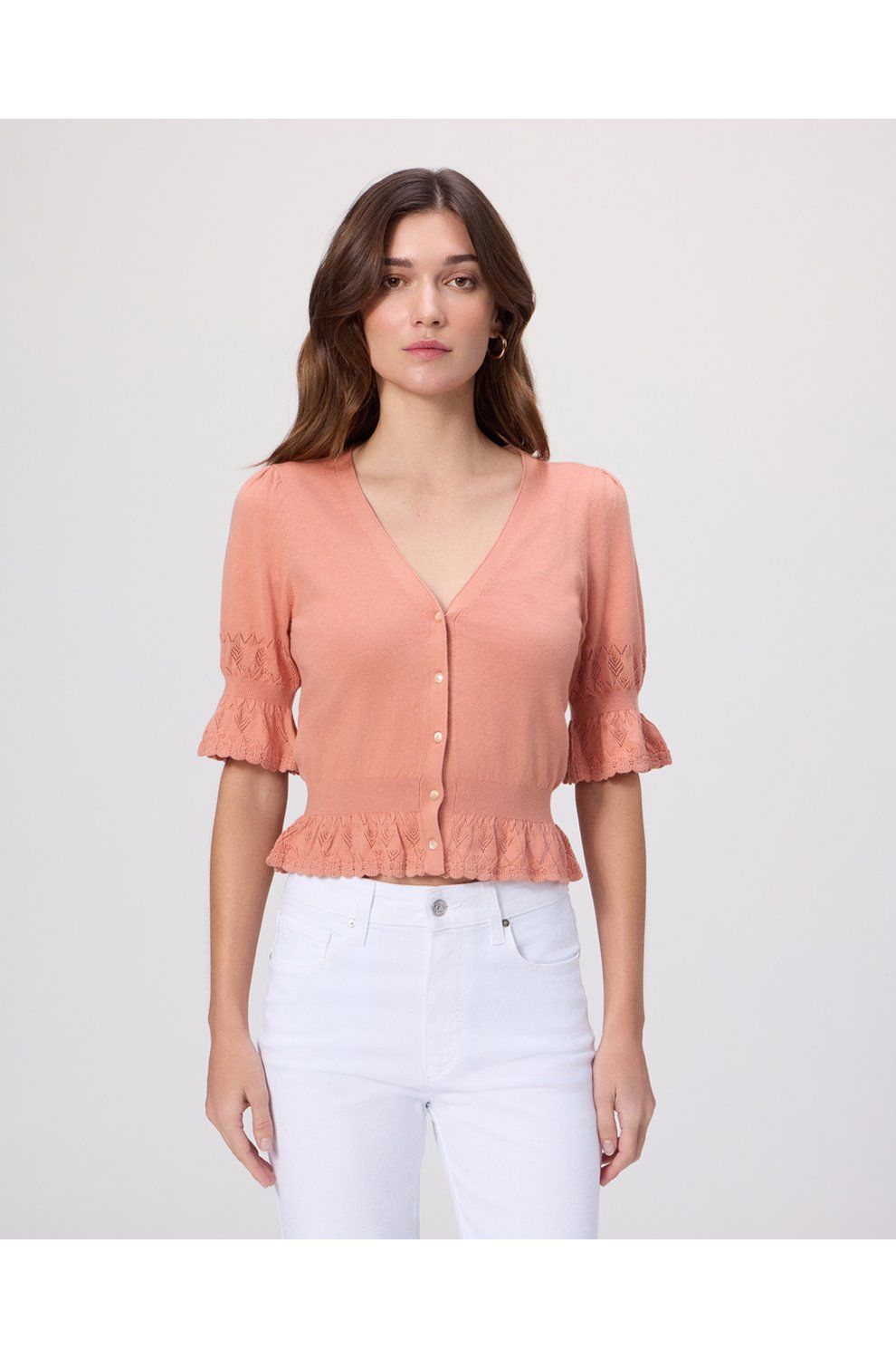 the vetra cardigan in peach tea