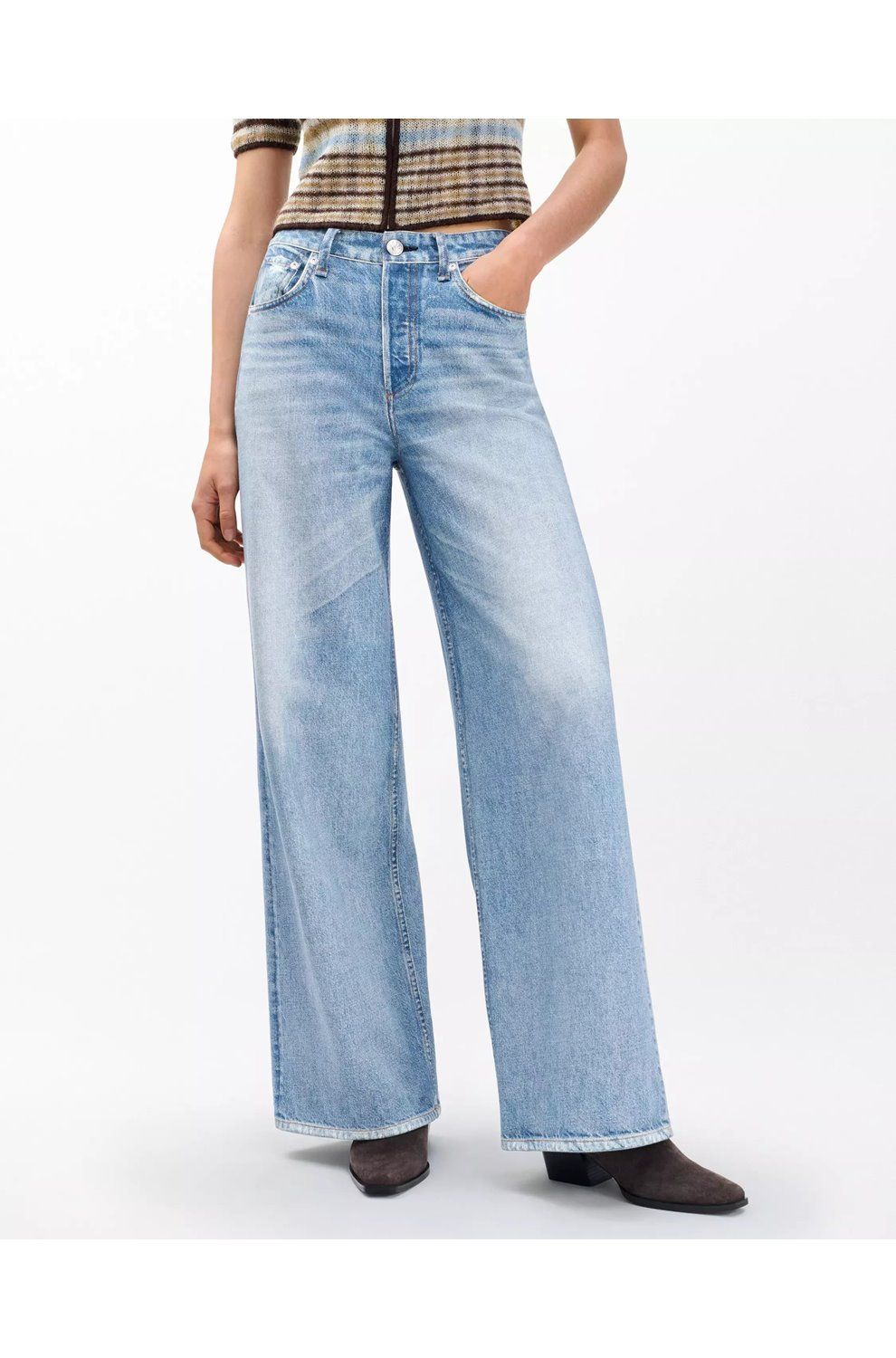 - High-rise, designed for a wide leg fit
