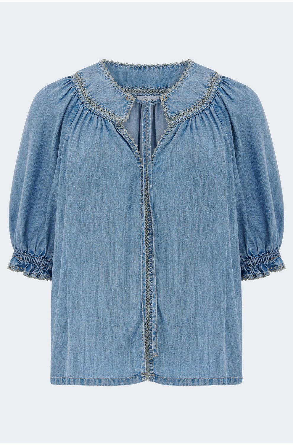 Rails' Belina is a super-soft imitation denim top featuring delicate embroidery detail, a relaxed flowing fit and elbow-length sleeves.