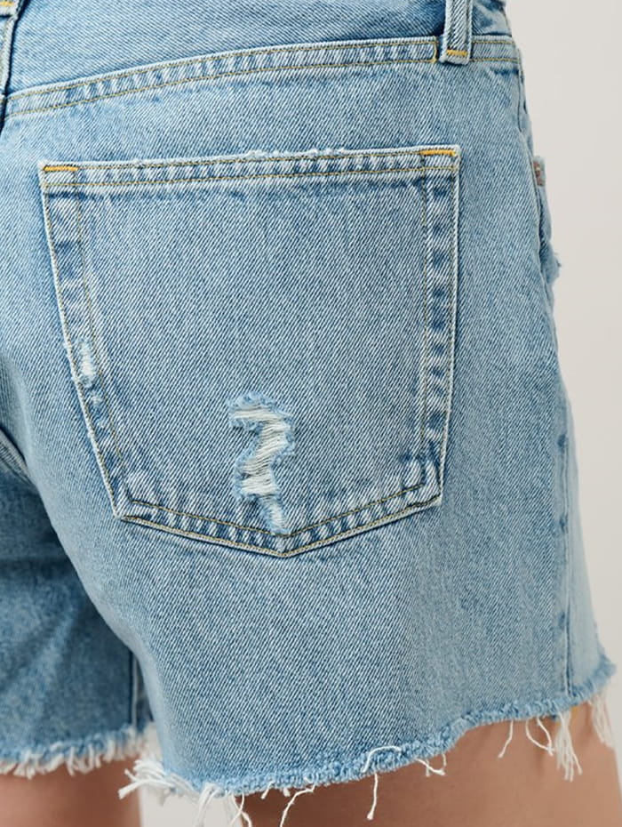 Longer styles of denim shorts offer more comfort, with a roomy fit that cuts above the knee. This breezy fit finishes further down the thigh, preventing chafing and discomfort, which is ideal for warmer days. For a flattering pair of denim shorts, explore our high-rise denim shorts that accentuate the waist with plenty of style options, from crop tops to easy shirting with a simple French tuck.