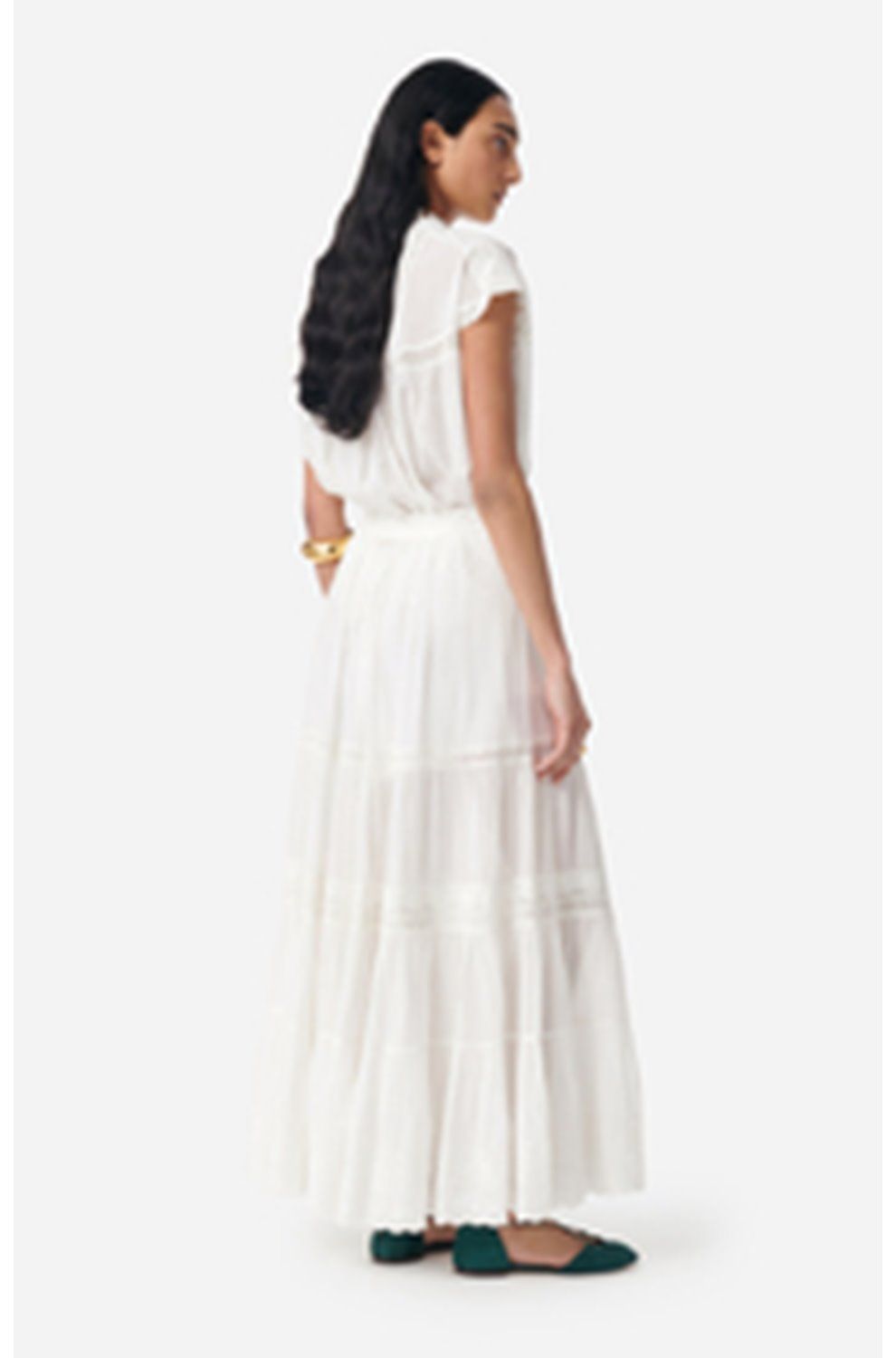 This flowy tiered skirt from Vanessa Bruno features an airy silhouette, with subtle lace details, a button-down front and waist tie. Finished with lightweight, removable shorts for added comfort and coverage, pair with a simple blouse or vest for an ethereal summer look.
