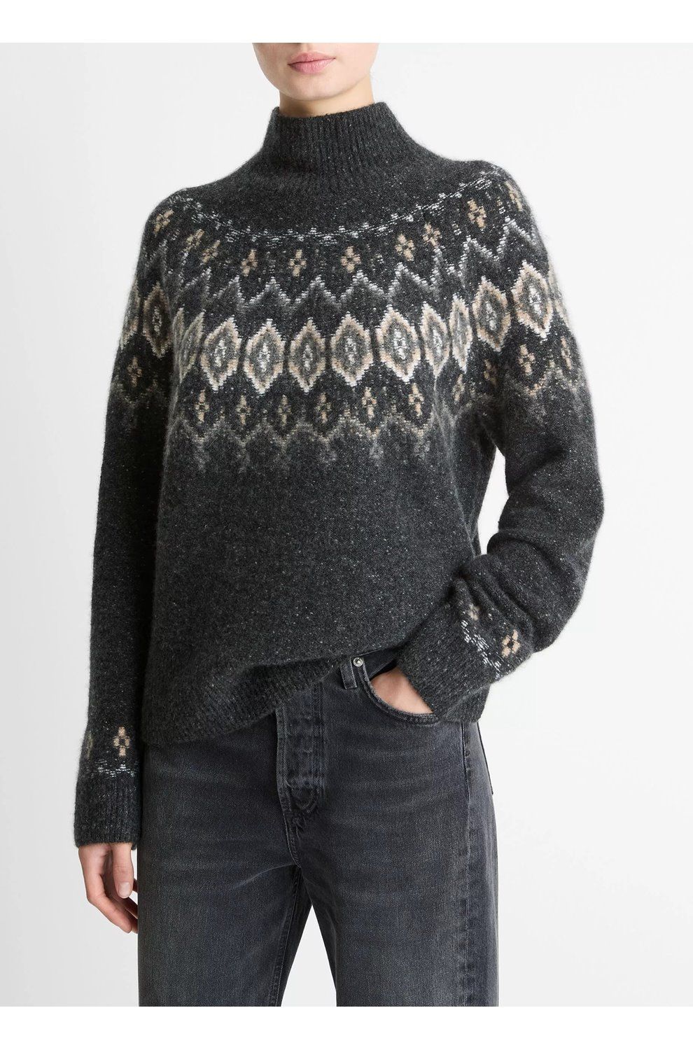 fairisle donegal turtleneck sweater in heather charcoal combo