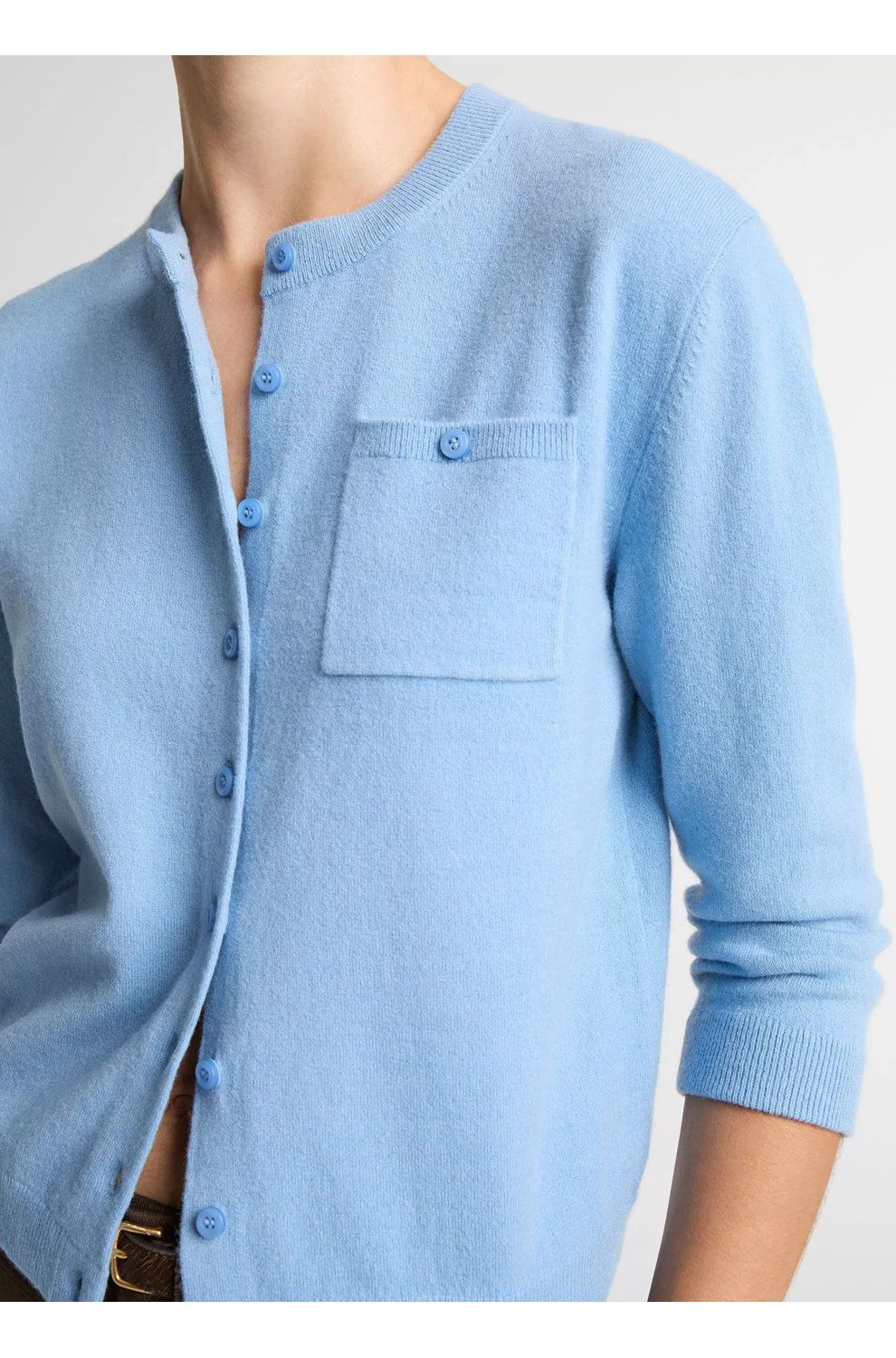 This soft, lightweight wool cashmere blend knit comes in a shrunken fit, with chest pocket detail and round neckline. In soft blue shade Hydra, this versatile staple is the perfect transitional piece.